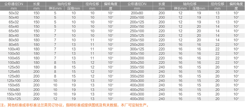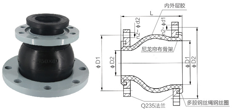 ◇材質及適用介質:● 橡膠接頭常用材質有 天然橡膠NR、三元乙丙橡膠EPDM、耐油橡膠NBR、耐磨橡膠、氟橡膠、食品級橡膠等。● 天然橡膠NR:適用于輸送介質溫度為-15℃-70℃、無腐蝕性、水、或空氣。● 三元乙丙橡膠EPDM:適用于弱酸弱堿、耐溫、耐溫130℃以內。● 耐油橡膠NBR:適用于液壓油、柴油、機油。● 按結構形式分為單球體、雙球體、變徑橡膠接頭、橡膠彎頭、風機盤管等。每種形式又可分同心等徑、同心異徑、偏心異徑三類。